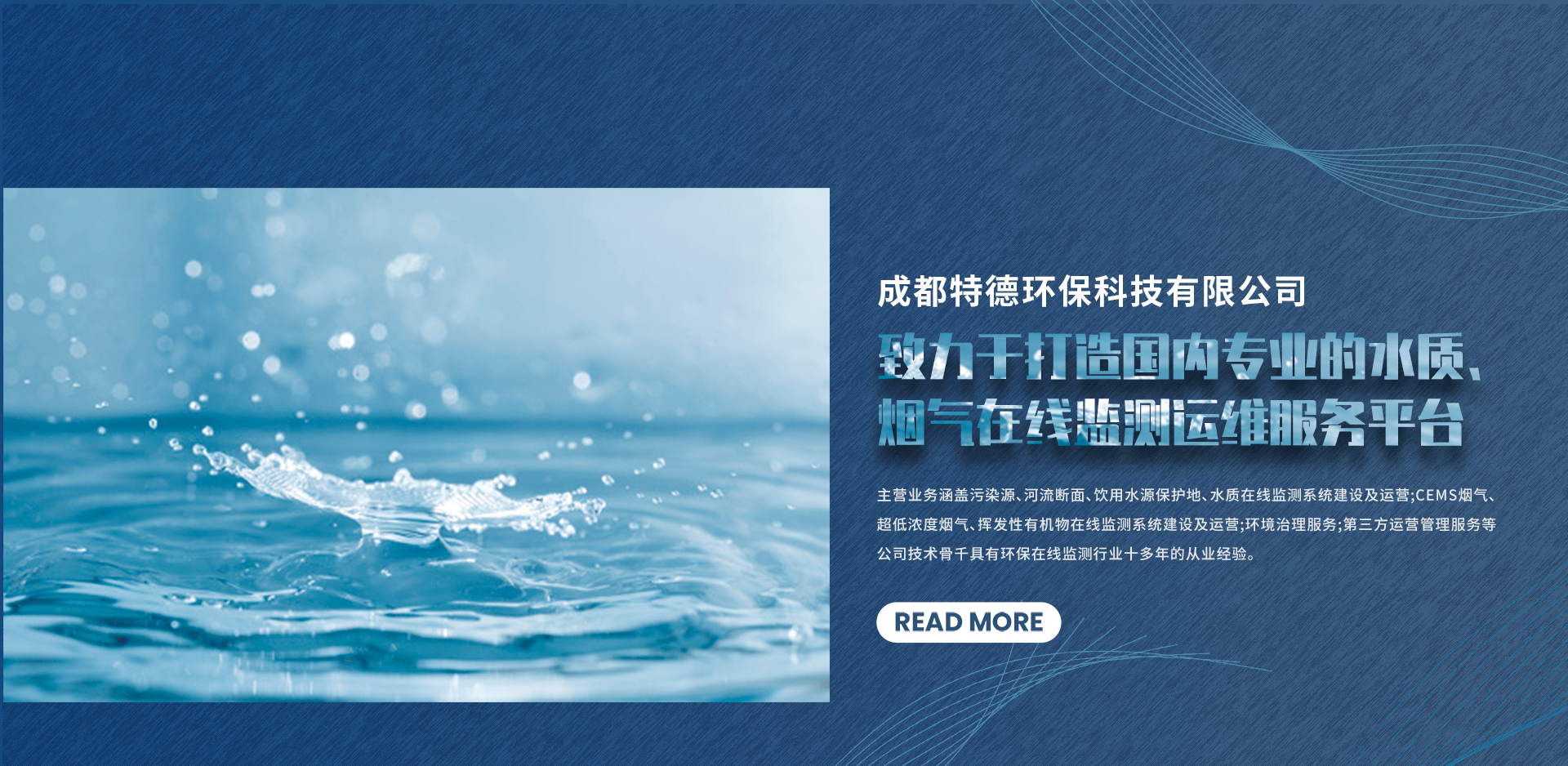 成都特德環??萍加邢薰局铝τ诖蛟靽鴥葘I的環境采樣、監測、檢測、治理及服務平臺。主營業務涵蓋污染源、河流斷面、飲用水源保護地、水質在線監測系統建設及運營;CEMS煙氣、超低濃度煙氣、揮發性有機物在線監測系統建設及運營;環境治理服務;第三方運營管理服務等。公司技術骨干具有環保在線監測行業十多年的從業經驗。 公司目前已通過高新技術企業認證、ISO9001質量管理體系認證、ISO14001環境管理體系認證、IOS45001職業健康安全管理...